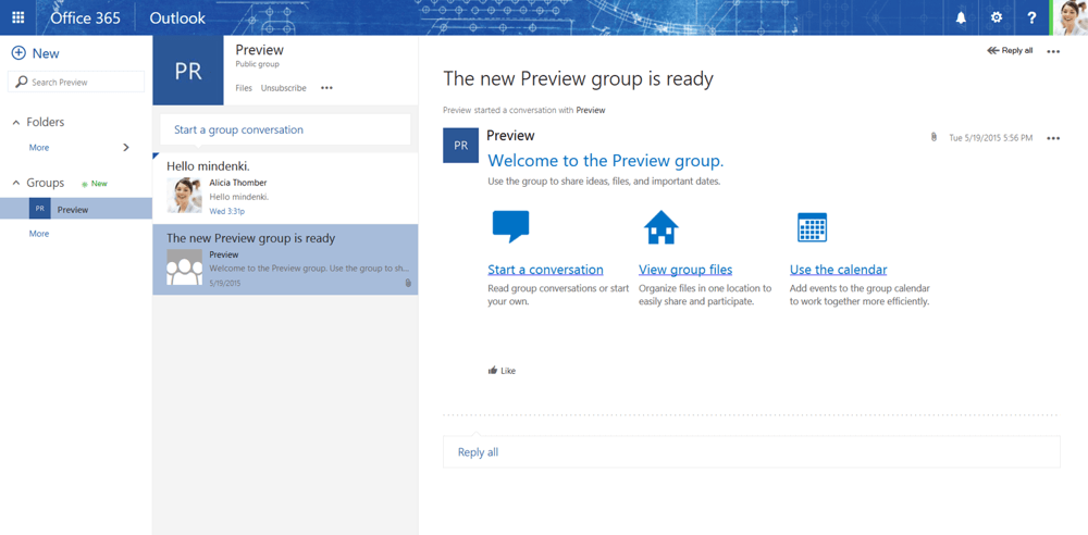 Κάθε ομάδα είναι ένας χώρος εργασίας για τα email, τις συζητήσεις, τα αρχεία και τα γεγονότα ημερολογίου όπου τα μέλη της ομάδας μπορούν εύκολα να συνεργαστούν και να διεκπεραιώσουν γρήγορα πράγματα που πρέπει να γίνουν. Οι ιστοσελίδες είναι παρόμοιες με τις Ομάδες, αλλά συνήθως δημιουργούνται και διαχειρίζονται κεντρικά. Ο καθένας, όμως, μπορεί να δημιουργήσει και να διατηρήσει τις δικές του ομάδες χωρίς την αρωγή του διαχειριστή.