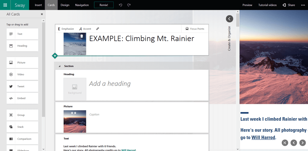 Παρακολουθήστε ένα βίντεο οδηγιών για το Office Sway.
